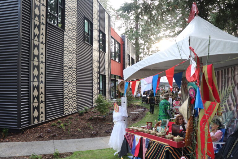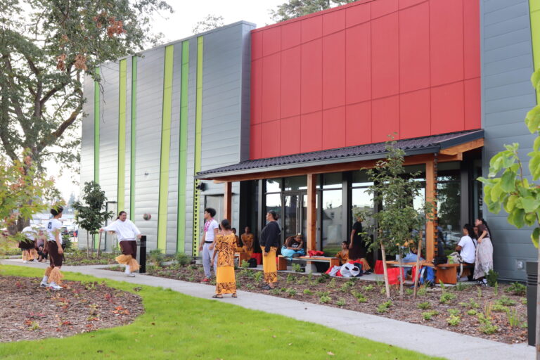 The landscape design respects and complements the mature stand of Oregon White Oak trees that grace the project site. The site is divided conceptually into three zones that reference the climate and flora of the API region. One enters the building on the east through the Pacific Island/Southeast Asian Garden. A Pacific Northwest Oak and Woodland Garden is created under the canopy of the existing trees on the south side of the project to create a pastoral viewing garden. The north side of the building is grade by an East Asian inspired Garden. The building layout is composed of capturing framed views into the landscape and providing natural