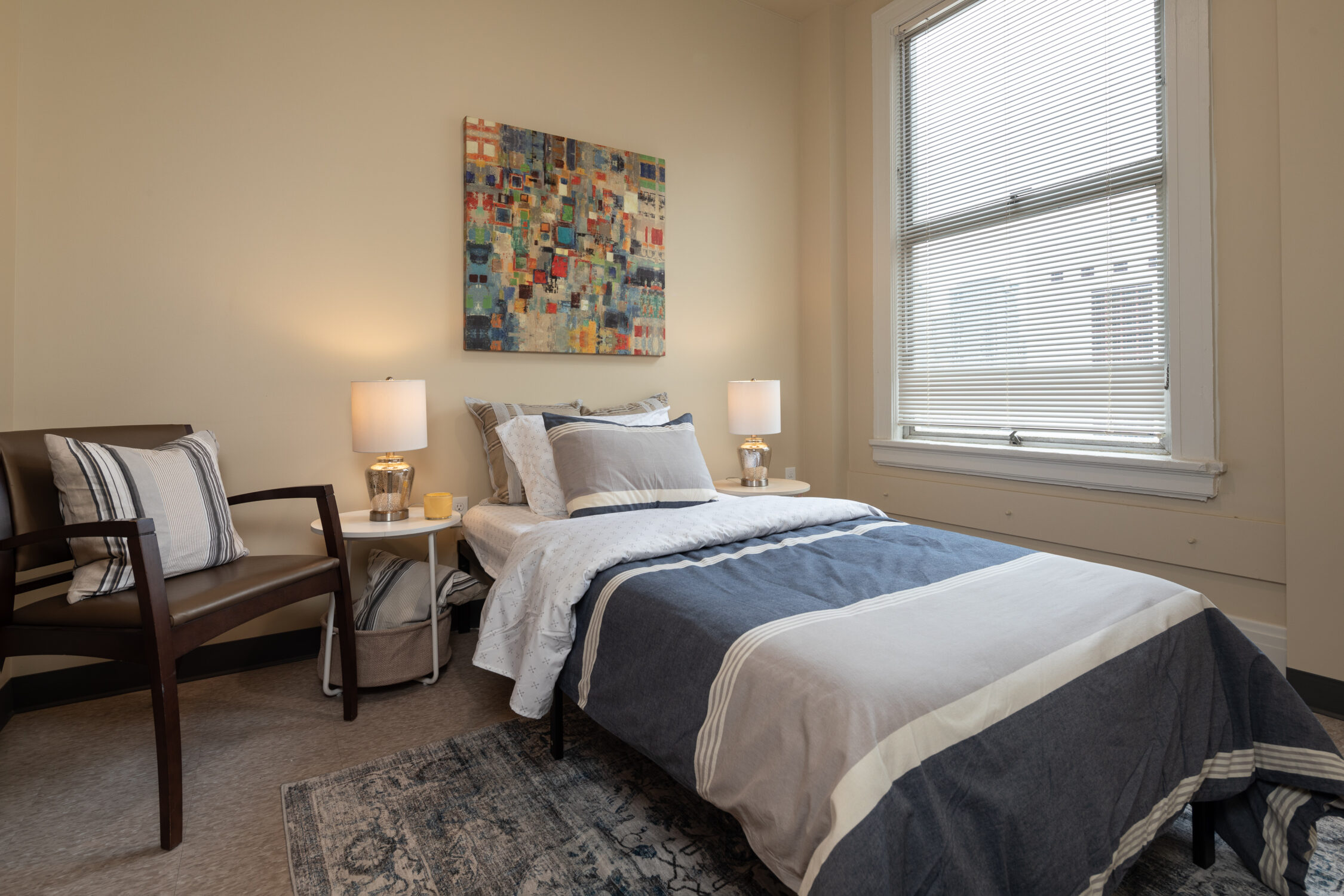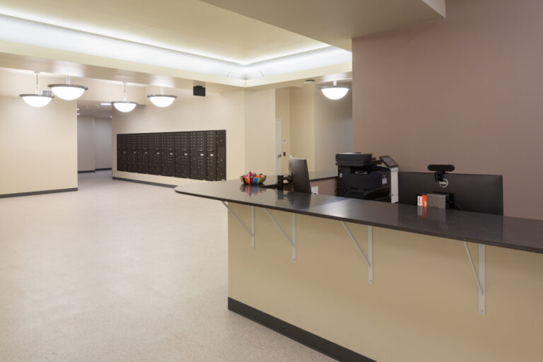 The YWCA Fifth and Seneca rehabilitation project focused on converting six floors of a 1914 community center into permanent housing, addressing the needs of those facing or at risk of homelessness. The core objective was to transform 154 SRO units into 114 studio and one-bedroom apartments, each with in-unit kitchens and bathrooms, significantly improving living conditions. Major upgrades included modernizing MEP systems, replacing the roof and adding solar panels, and implementing seismic reinforcements. The scope included minimal exterior improvements.