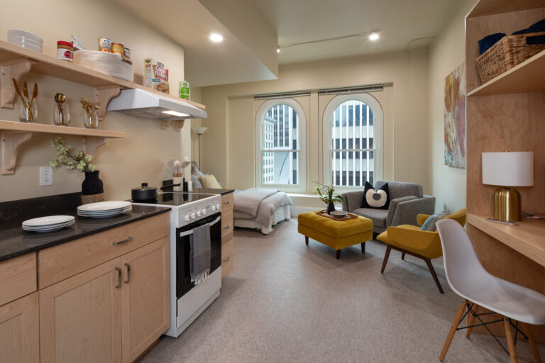The project presented significant opportunities: directly serving a vulnerable population by providing stable housing and revitalizing a historic landmark. This rehabilitation balances historical preservation with contemporary needs, ensuring the building continues to serve the community effectively. Funding came from the City of Seattle Office of Housing, low-income housing tax credits, Housing Trust Fund, federal Historic Tax Credits, and other private and public partners.